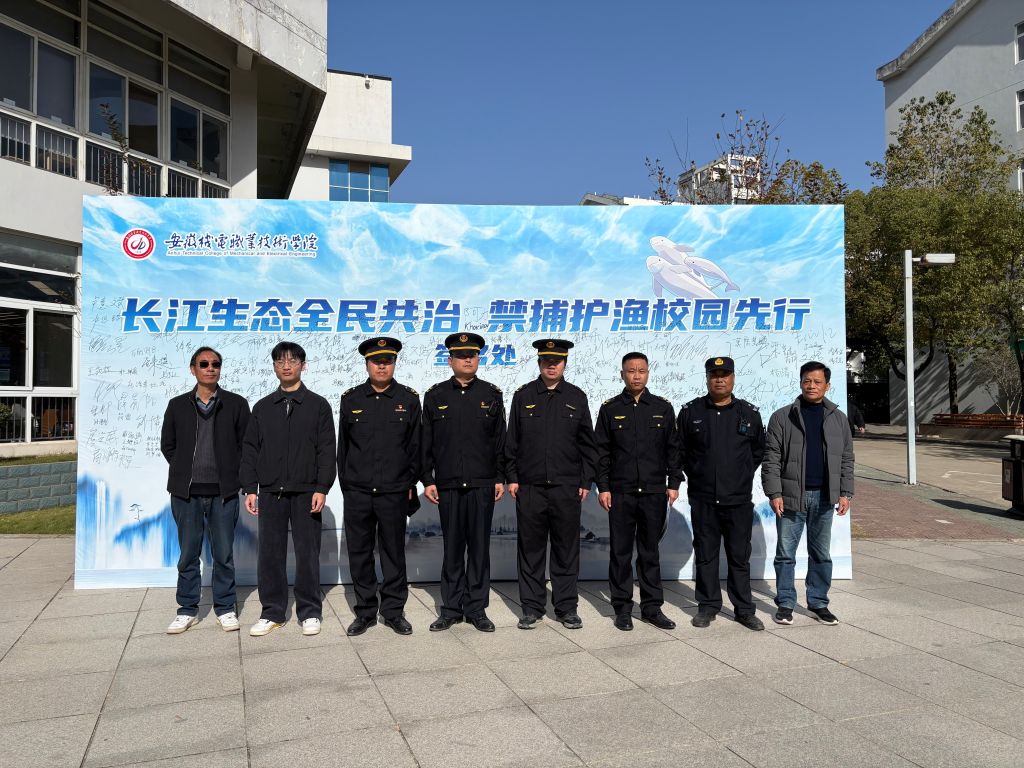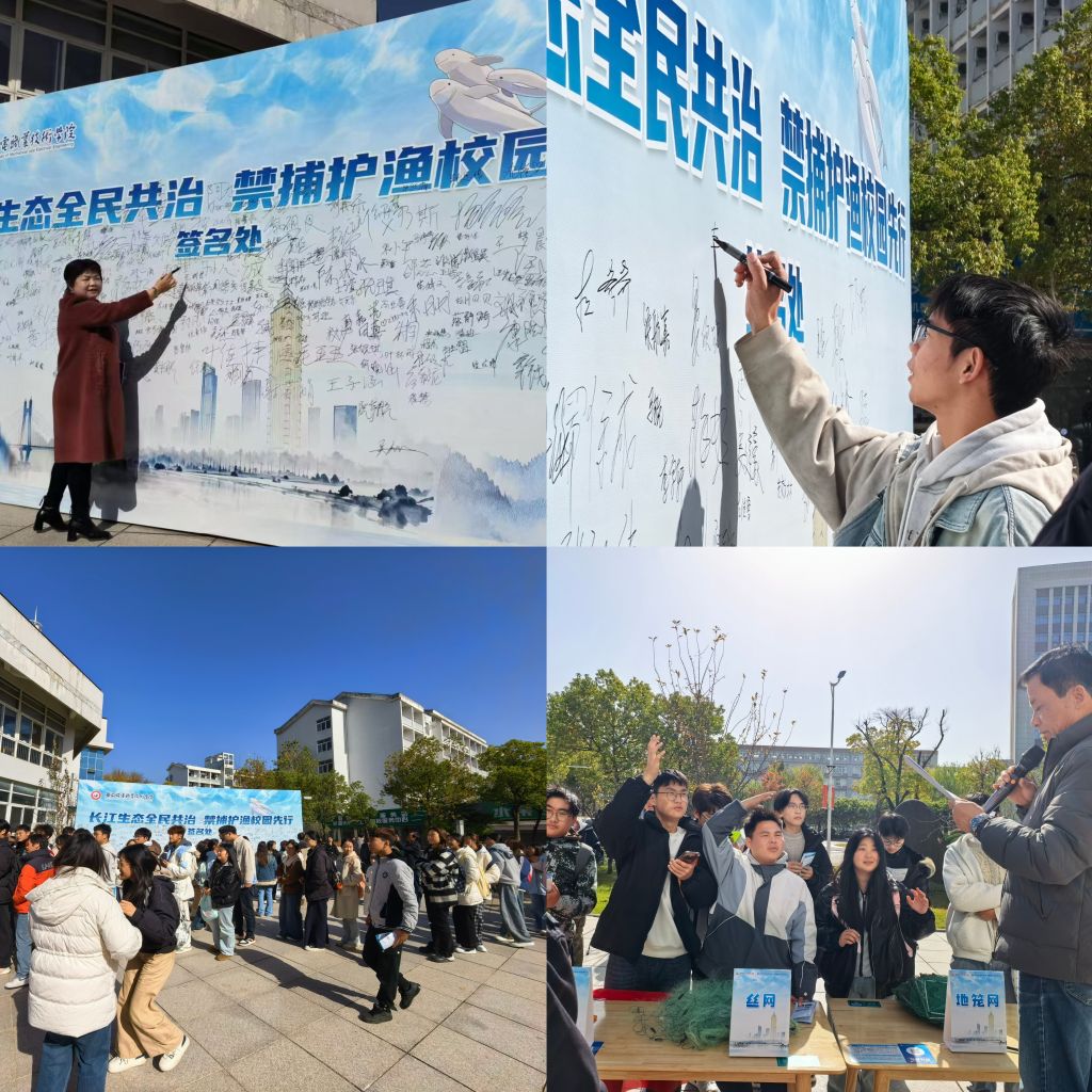 为深入学习贯彻习近平生态文明思想,积极响应长江十年禁渔计划,推动校地协同共建生态保护治理体系。11月28日,由芜湖市弋江区水利局主办,经济与贸易学院、乡村振兴产业学院联合协办“长江生态全民共治,禁捕护渔校园先行”主题宣传签名活动在学校食堂小广场隆重举行。乡村振兴产业学院党支部书记徐世津,经济与贸易学院党政领导、教师出席活动,弋江区水利局相关工作人员、8个班团支部团员青年代表共 200 余人参加活动。
