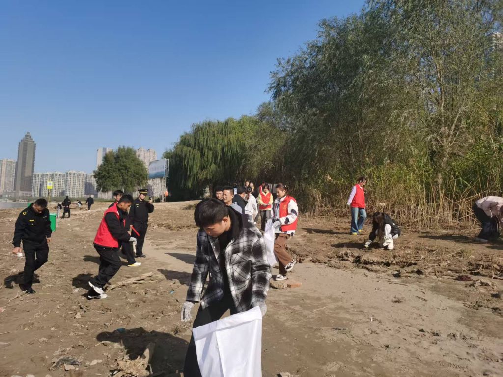 本次活动将劳动实践与科普教育深度融合。活动伊始,在工作人员的现场指导下,师生手持清洁工具,对长江沿岸废弃塑料、杂物等进行全面清理。参与师生以高度热情投入劳动,分工协作、密切配合,以实际行动践行生态文明理念。经过一小时辛勤劳动,累计清理江滩垃圾20余袋,有效改善了岸线环境卫生状况。
