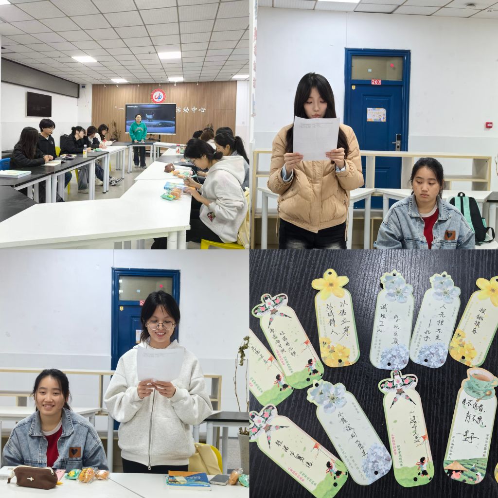 视频结束后,诚信传统诗词朗诵环节温情开启。同学们依次登台,诵读《论语》中“言必信,行必果”等经典篇章,抑扬顿挫的语调里,传递着对诚信美德的尊崇。紧接着,成语接龙互动热闹展开,“言而有信”“一诺千金”“饮水思源”等热词轮番出现,大家踊跃参与,在互动中深化对美德的理解。活动最后,同学们手持空白书签,认真书写诚信感恩相关的寄语与感悟,有的写下“以诚待人,以恩润心”,有的题上经典诚信格言,将对诚信的坚守、对他人的感恩融入笔墨之间。一枚枚精致的书签,既是对美德的践行,也是对自我的期许,承载着同学们对诚信感恩品质的追求与向往。